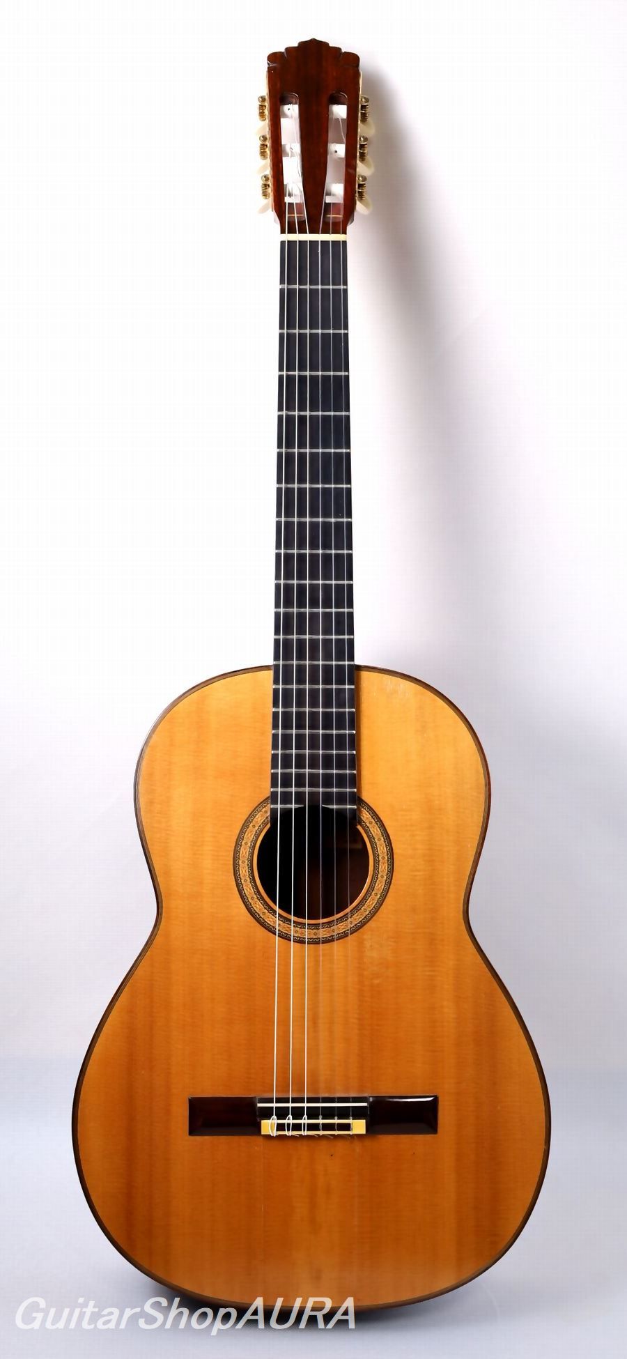 が入荷しました。表面板にゴルペ板が装着してありますが当初はクラシックモデルとして製作された可能性があります。マドリッドらしい重厚でおおらかな響きが特徴で、重心が低くたっぷりとした低音からきりっとした高音に至る音響バランスはいかにもスペインの伝統を感じさせます。品のある表情、艶やかな音、音の密度などはすぐれたものがあり、この製作家ならではのスタンスが感じられる一本となっています。