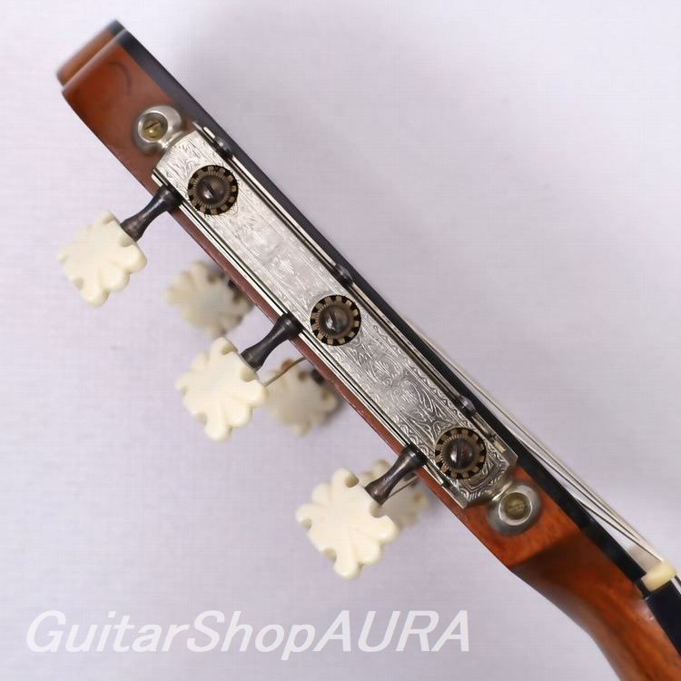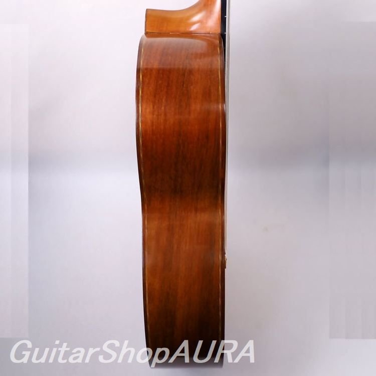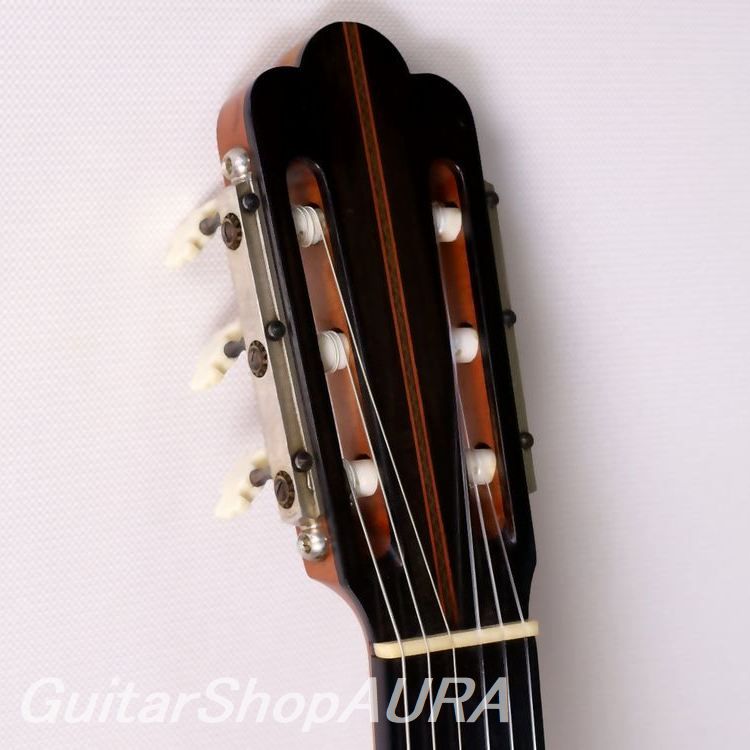 特に割れや改造等の大きな修理履歴はありません。弾き傷等の状態に関しても浅く細かなものが全体にまんべんなく見られますが年代を考慮すると少なめです。糸巻はオリジナルのものを装着しており(つまみは貝殻型ではなく、蟹型のもの)現状でも機能的に良好です。ネックはほんのわずかに順反りですが標準設定の範囲内で特に問題ありません。ネック形状は普通の厚みのDシェイプ、弦高値は2.7/3.5mm(1弦/6弦 12フレット)でサドル余剰は1.0~1.5mmあります。