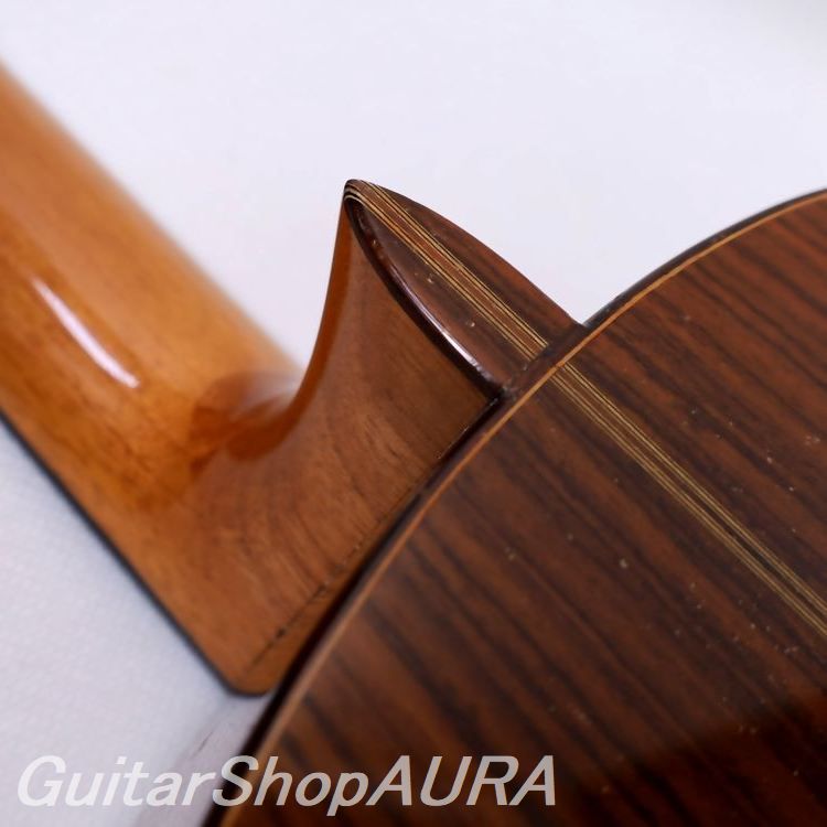 もともとマヌエルの製作美学の根底にはトーレス、ハウザー、サントスらのトラディショナルなものへの憧憬があり、特にハウザーの影響が濃くあらわれた1950年代から60年代のものは高い評価を得ています。1970年代から1980年代までの楽器はユーザーの需要もありボディが大型化し、ちょうど人気の絶頂にあったラミレス的な要素を感じさせる力強く豊かな音量を備えたギターになっています。その後はもとのハウザースタイルを基調とした伝統的スタイルへと回帰し、2014年にその生涯を閉じるまでアメリカ最大の巨匠と崇敬されました。