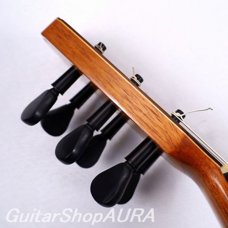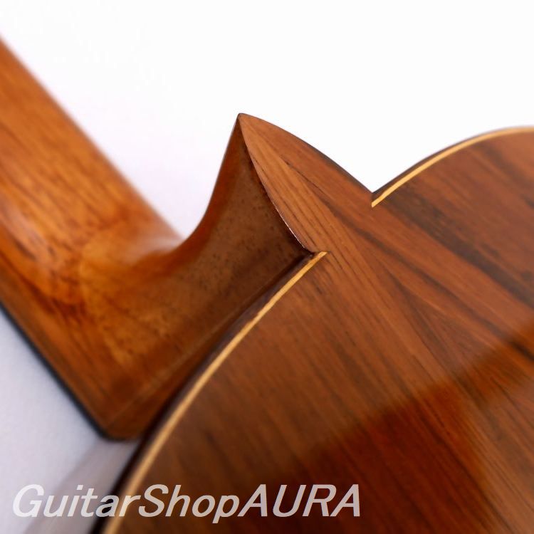 糸巻には Pegheds製ギア付き木製ペグ を採用。ヘススらしい、生々しく木質感に富んだ響きで、彫りの深い音像と鋭敏なレスポンスが特徴。特に高音は艶やかで、古雅さとフレッシュさが共存した音色を備えている。多くの現代的トーレスモデルとは異なり、19世紀的な存在感を持つレプリカ としての魅力が際立つ一本である。