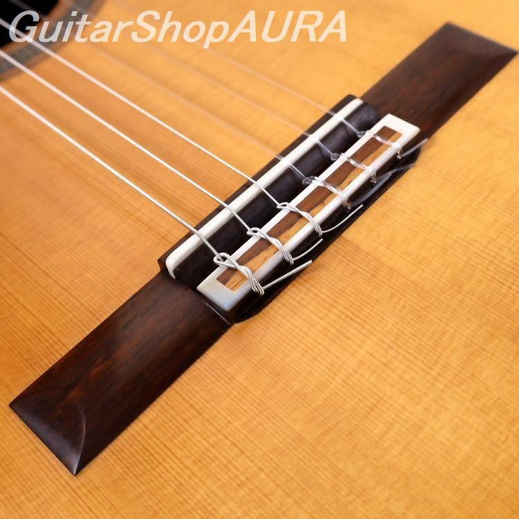 ラジャ・フェレールのギターにおいて特筆されるのは撥弦から発音へのメカニズムの自然さで、弦の弾性を木がしっかりと受け止め(これは撥弦の際の反発感として体感できます)、それを音へと洗練させてゆくプロセスにおける適切さが常に保たれているのですが、ここに一切の無駄なアクションを敢えて加えない彼の技量と、製作家として中庸であることの美徳が通底しており、その抑制された円熟ともいうべきスタンスは充実したグラナダ派の中堅ブランドの中でも逆に際立っていると言えるでしょう。