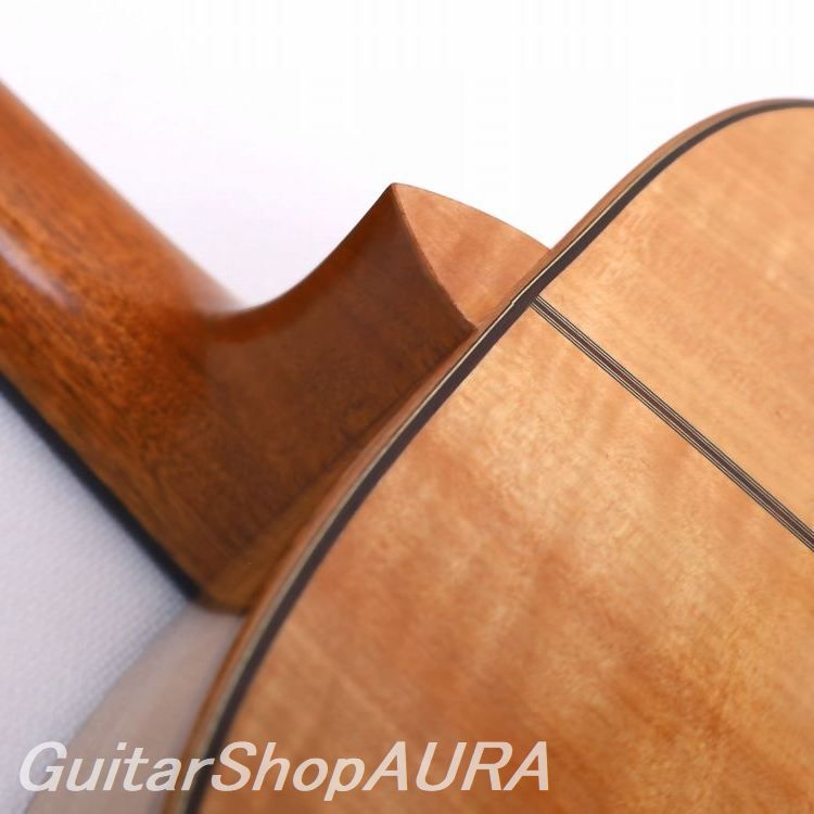 エリック・クラプトンが1992年に発表したライブアルバム「Unplugged」で使用していたアコースティックギターが1939年製のMartin 000-42 モデル。このアルバムの大ヒットを受けて1995年にクラプトン初のシグネイチャーモデルとして000-42 EC が461本限定で生産されることになります。本作はこの42ECモデルに準拠しており、厳密に言えばスペックは同一ではなく細かなサイズ設定などに相違があるほか、なんと言っても横裏板にフレイムメイプルを使用し全体もセラック塗装仕上げ、ロゼッタやヘッドデザインなども実際はコーエンのオリジナルとなっており、000-42EC のInspired モデルと呼ぶ方がふさわしいでしょう。表面板の内部構造はMartin のスタンダードXブレーシングシステム(スキャロップドではない)を踏襲しています。ちなみに同じ「Unplugged」でクラプトンはクラシックギターも演奏しており、これはスペインの製作家 Juan Alvarez 1977年作のもの。