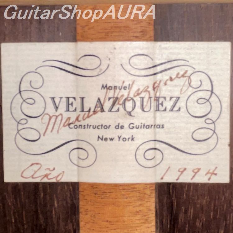 [製作家情報] マヌエル・ベラスケス Manuel Velazquez(1917~2014) 1917年プエルトリコ生まれ。母方の祖父母はスペイン人で、名工サントス・エルナンデスの縁戚にあたります。農業に従事する家系に生まれながらも彼は家具職人として修業を始め、同時にギターも製作するようになります。16歳で最初のギターを製作し、その頃に製作したギターの完成度の高さに感銘を受けた地元のある音楽家からニューヨーク行きを勧められ、1941年移住。第二次大戦の時期には造船所で木工に携わります。地道に製作を続けていた彼のギターは1940年代後半から地元の名演奏家たちに愛用されるようになり、その後はアンドレス・セゴビアが彼のギターを称賛するなど、瞬く間に名声を獲得してゆきます。1972年にプエルトリコに戻りそこで工房を設立、1982年には再びアメリカに戻りヴァージニア州で9年間過ごした後、フロリダに移り製作を続けます。この頃から息子のアルフレッドも製作に参加するようになり、2014年にマヌエルが亡くなった後は彼が工房を引き継いでいます。