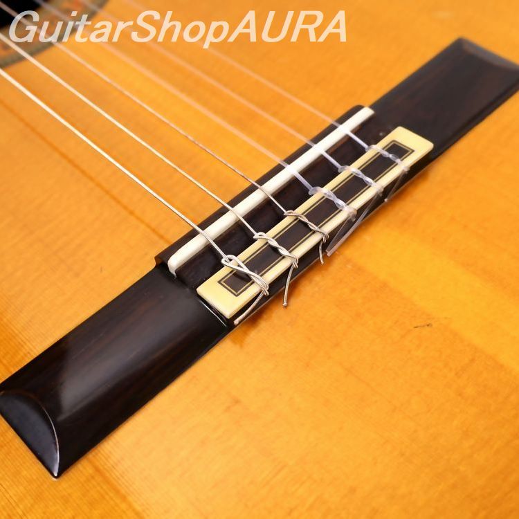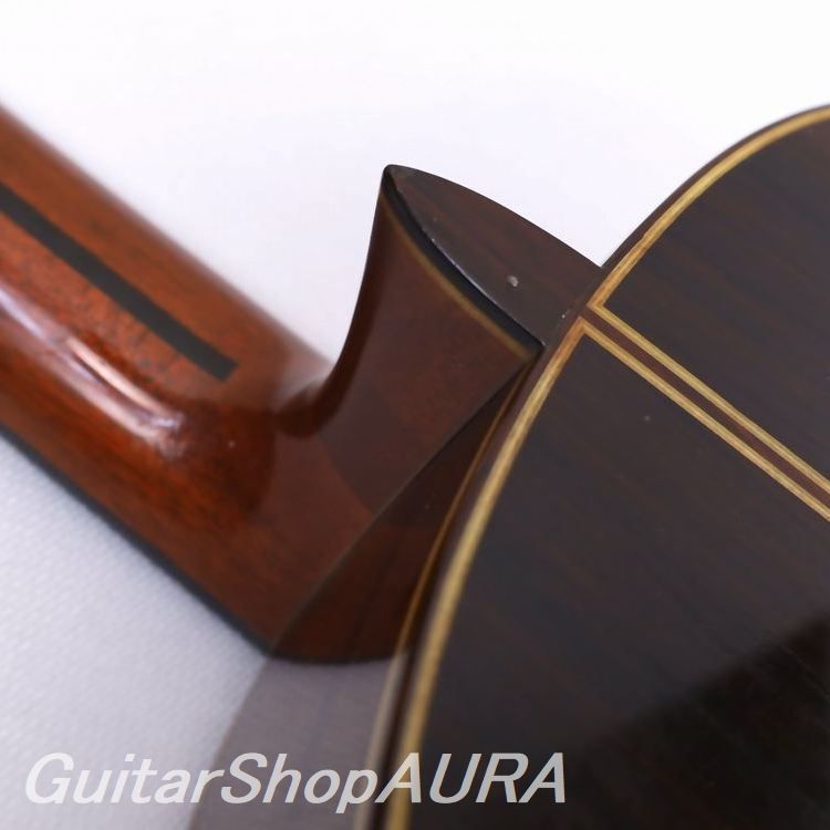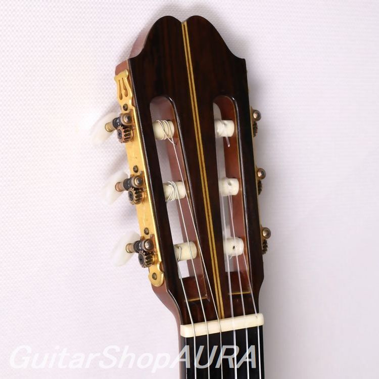 表面板はセラック、横裏板はラッカー塗装仕上げで、糸巻きにはフステーロ製を装着。ネックはわずかに順反りで良好な状態、フレットも良好です。弦高値は1弦3.8mm、6弦4.0mmで調整されており、サドル余剰は1.6mmあります。