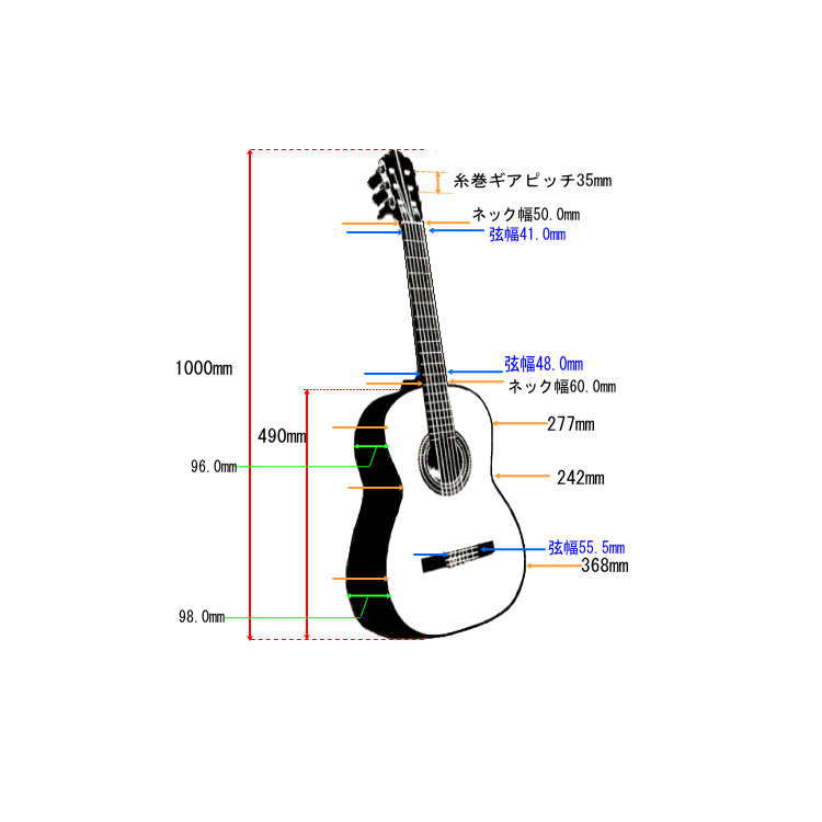 弦 高:1弦 3.8mm / 6弦 4.0mm