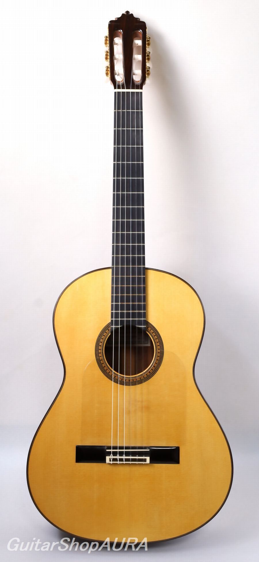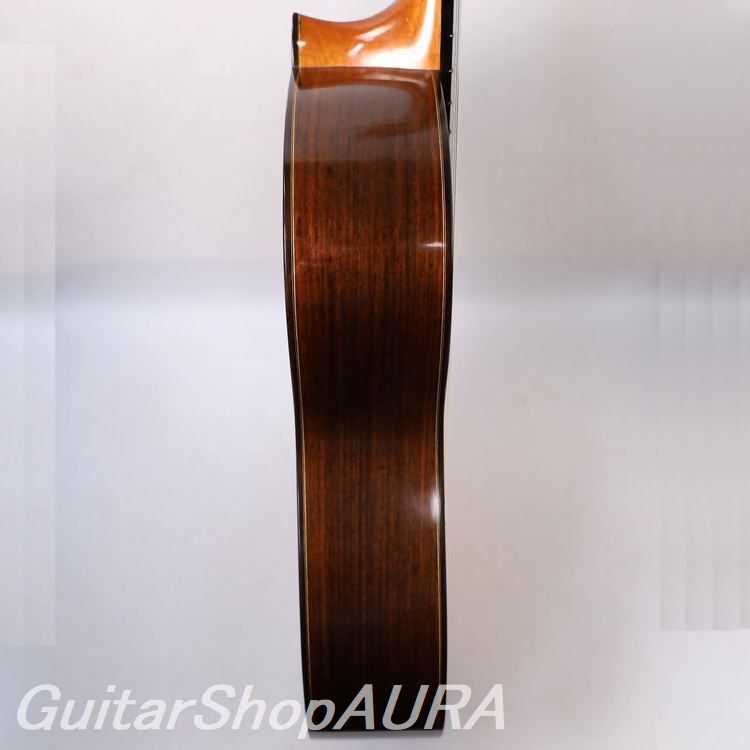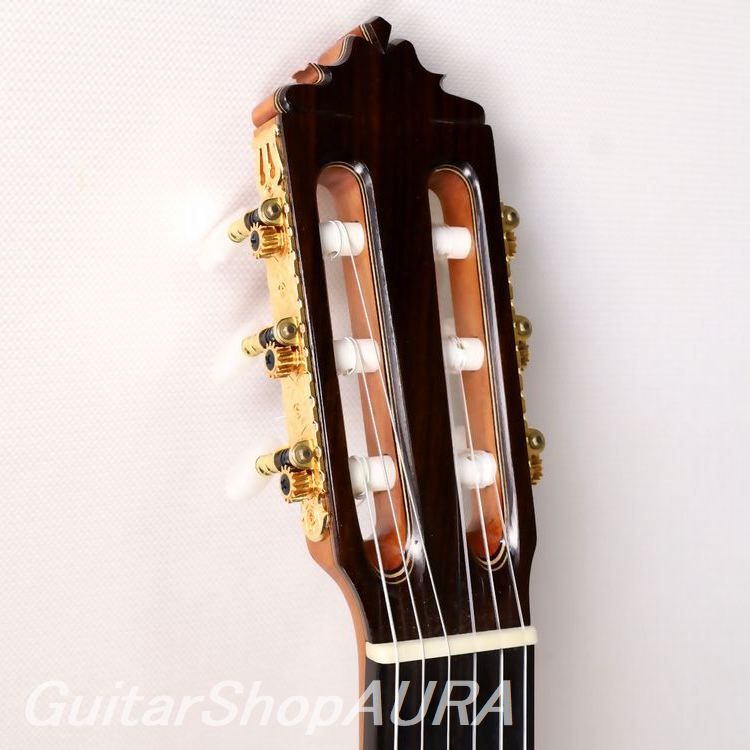 人気ギタリスト沖仁オリジナルモデルの製作により、現在国産のフラメンコとしては最も新しいファンを増やしているブランドの一つ。むせかえるような情感というよりは、楽器としての機能性の高さと、シャープネスや反応、音色の明朗さなど全てにおいて不足のないバランスが魅力。しかしながらその土台にしっかりとスペイン的なニュアンスが通底しているところ、製作家の面目躍如といったところでしょう。ジャンルを超えてオールマイティに使用できる一本です。全面セラック塗装で良材を用いた仕様、コストパフォーマンスの高さも人気のモデル。